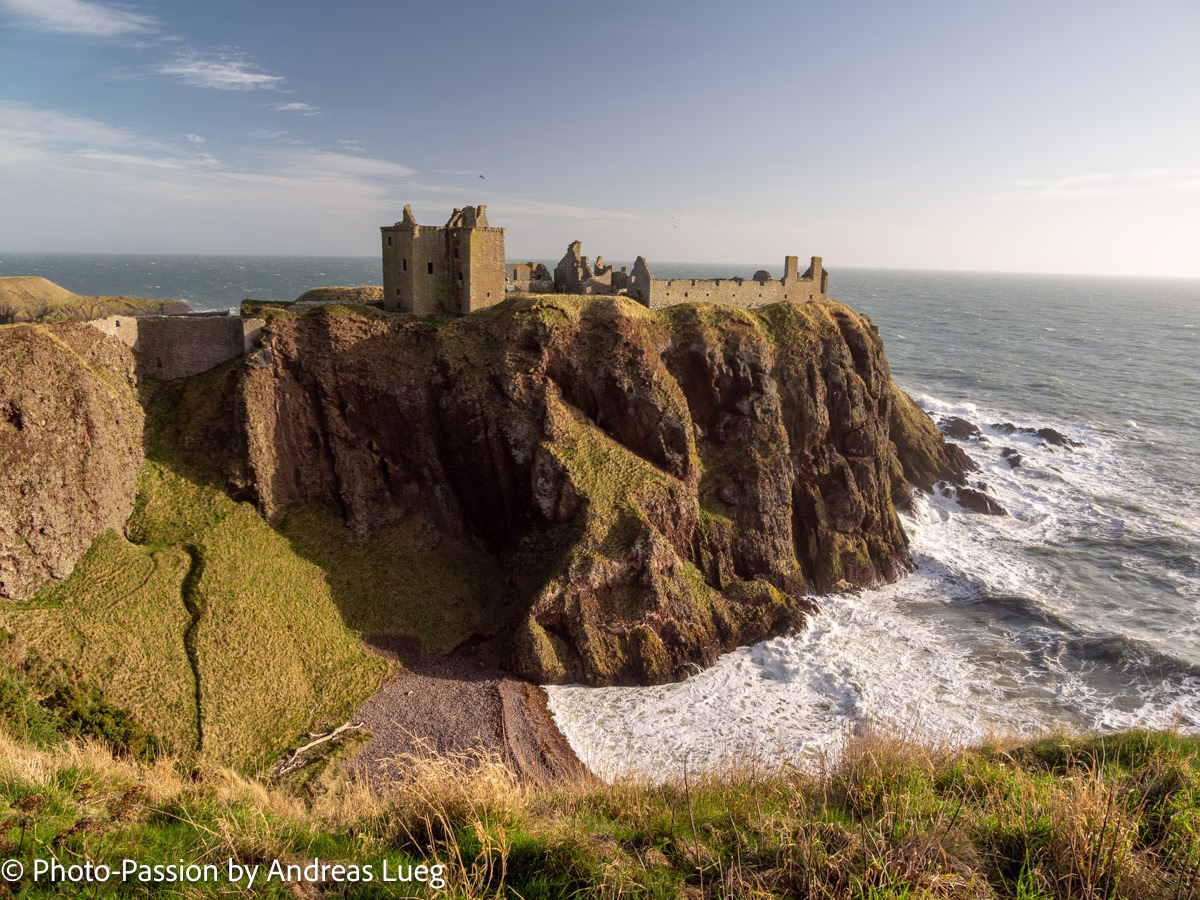 Schottlands Osten Schottland ist immer eine Reise wert und Schottlands Osten hat viel zu bieten: Alte Schlösser und Burgen, Wasserfälle, eine eindrucksvolle Küste mit farbenfrohen Klippen, kleine Hafenstädtchen und einsame Strände!